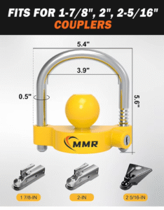 Universal Coupler Trailer Locks Bright Yellow Light Weight Ball Trailer Hitch Lock Fits 1-7/8 Inch 2 Inch 2-5/16 Inch Couplers