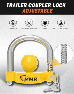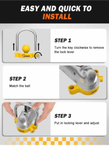 Universal Coupler Trailer Locks Bright Yellow Light Weight Ball Trailer Hitch Lock Fits 1-7/8 Inch 2 Inch 2-5/16 Inch Couplers